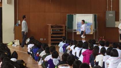 入館式を行い、日高少年自然の家の職員さんから施設の使い方や海の活動について説明していただきました。