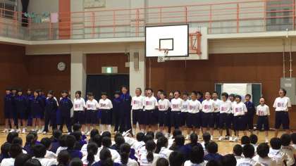 1年生は、クラス対抗で、校歌の合唱コンクールを行いました。写真は、1組、2組の様子です。