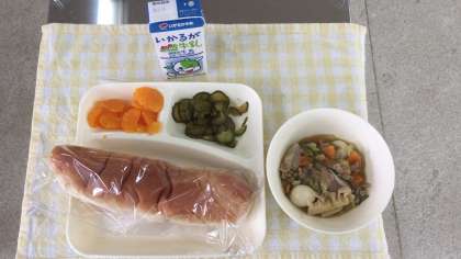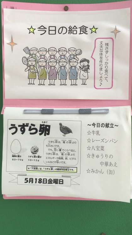 5月18日(金)、今日の給食の献立は、『八宝菜・きゅうりの中華あえ・みかん(缶)・パン・牛乳』でした。