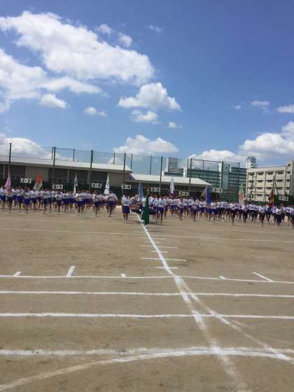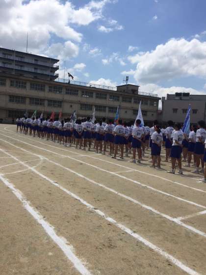 3学年揃っての全体行進、校歌斉唱の様子です。