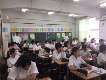 小学校の先生方も教室に入って、1年生の授業の様子を見学しています。