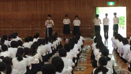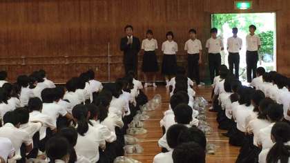 7月2日(月)朝、本校体育館で『全校集会』が行われました。