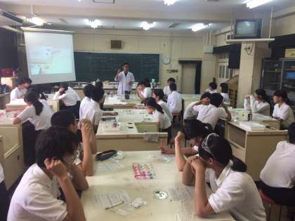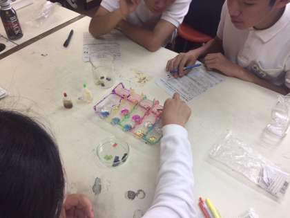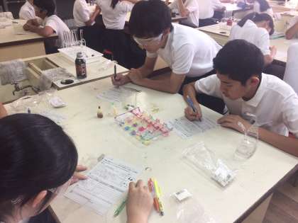 「酸性やアルカリ性の水溶液に共通する性質」について実験をしています。