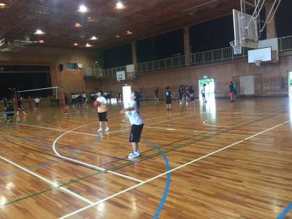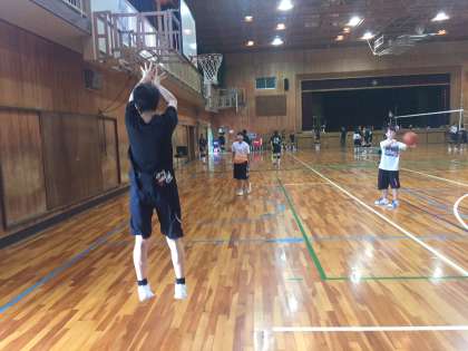 ディフェンスのフットワークの練習や、シュート練習をしています。