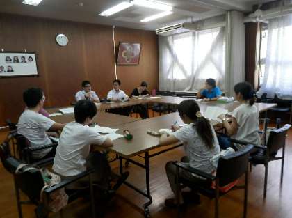 期末テスト(1日目)の放課後、午後3時45分から本校において、校区内の加島・三津屋両小学校の先生方が集まり、合同の研修会を行いました。今年で3回目になりますが、加島・三津屋地域の子どもたちを小学校、中学校の先生方が協力、連携して全体で教育活動を推進していくための研修会としています。