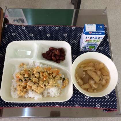 9月6日(木)、今日の給食の献立は、『親子丼・とうがんのすまし汁・金時豆の煮もの・米飯・牛乳』です。久しぶりの給食でしたが、みんな完食で、午後からのテストに備えました。