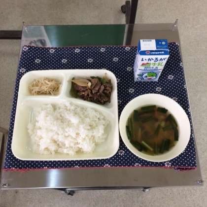 9月10日(月)、今日の給食の献立は、『プルコギ・トック・もやしの甘酢あえ・米飯・牛乳』でした。明日はの献立は、『イタリアンスパゲッティ・グリーンアスパラガスとキャベツのサラダ、はっ酵乳・パン・牛乳』です。