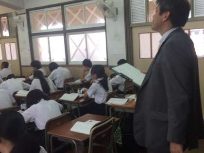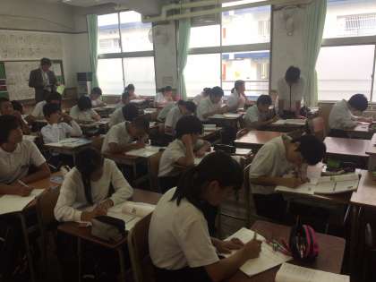 本日「学力向上推進モデル事業」指導実践チームが来校し、1限に1年生の数学「文字と式」の関係の表し方についての授業見学がありました。