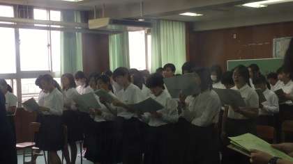 今日は、学年全体合唱の練習を、各パートに分かれて行いました。