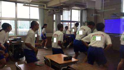 写真は、2年生が10月19日(金)の『文化祭』に向けて、学年劇の練習を行っている様子です。