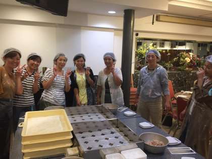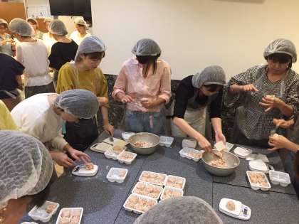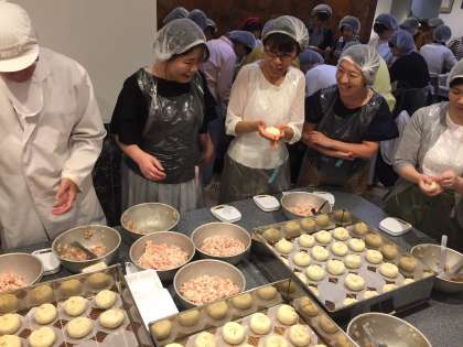 蓬莱の豚まん・焼売づくり体験の様子です。
