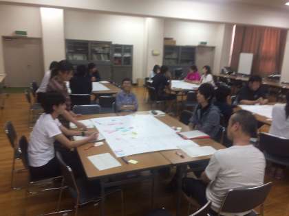 班別に分かれ、まず授業をされた先生から感想を聞き、その後、授業の進め方や発問の仕方などについて協議をしました。