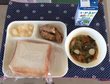 9月19日(水)、今日の給食の献立は、『あげギョウザ・中華煮(うずら卵)・和なし・パン・牛乳』でした。明日の献立は、『鶏肉とさといもの煮もの・豚肉とキャベツのいためもの・みたらしだんご・米飯・牛乳』の予定です。