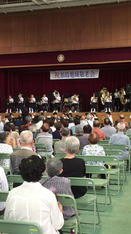 『加島地域敬老会』で本校吹奏楽部が演奏を、茶道部がお点前を披露させていただきました。