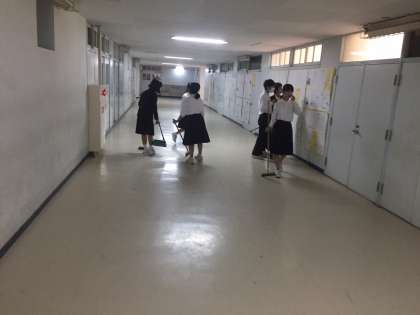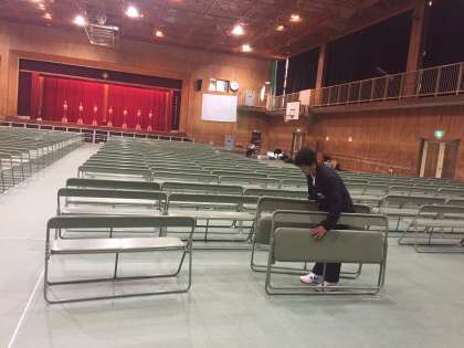 体育館の会場の準備や展示会場等の校内清掃をしています。