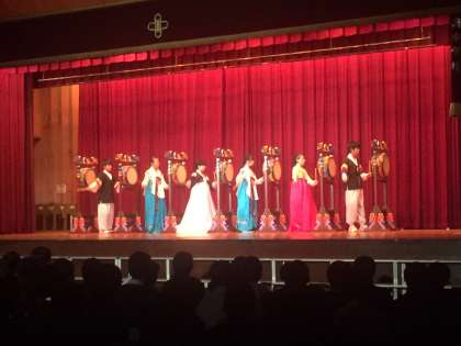 韓国・朝鮮の両面太鼓「ヤンミョンプㇰ」の演奏に併せ、伝統芸能の一つ「ボナ」を披露してくれました。