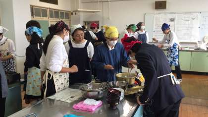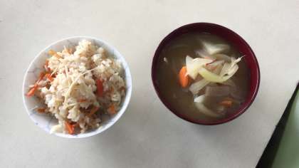 学校元気アップ事業のボランティアさんに教えていただき、『ツナときのこの炊き込みご飯』『豚汁』をつくりました。