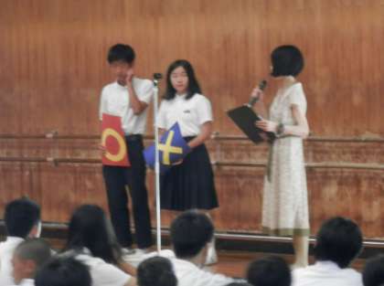 本日で1学期が終了。体育館で終業式を行いました。