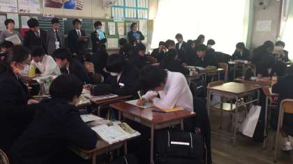 『阿部正弘の決断の背景を探ろう』をめあてに授業を進め、大阪府内の社会科の先生方も多数参観に来ていただきました。