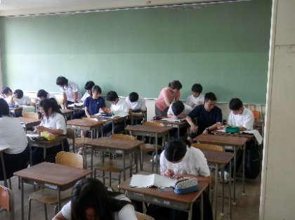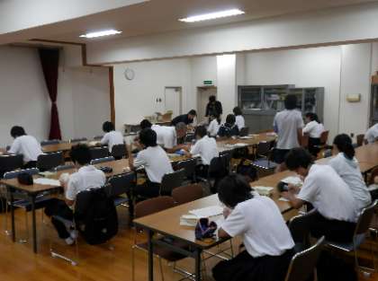 1年生は、数学と英語の2時間。2年生は、数学・国語・英語の3時間。3年生は、国語と英語を3時間かけて行いました。それぞれに、学年の先生方総動員で指導にあたっています。参加している生徒は、1学期の積み残しを取り戻すべく集中して頑張っていました。
