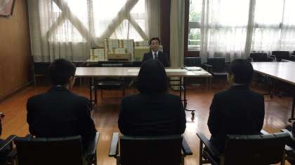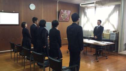 12月3日(月)1・2限、本校中会議室で、3年生は、『校長面接練習』を実施しました。