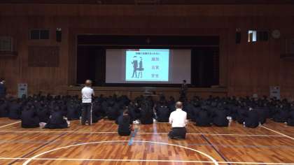 12月5日(水)6限、本校体育館で、3年生は『制服着こなし講座』を行いました。