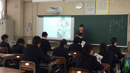 写真上段は国語「マンガだって文学的」、中段は「英会話講座」、下段は情報「アルゴリズムを学ぼう」の様子です。
