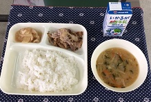 12月7日(金)、今日の給食の献立は、『豚肉のしょうが焼き・みそ汁・だいこんの煮もの・米飯・牛乳』です。