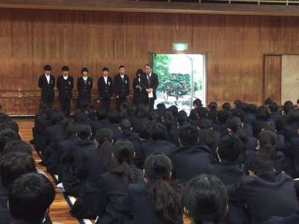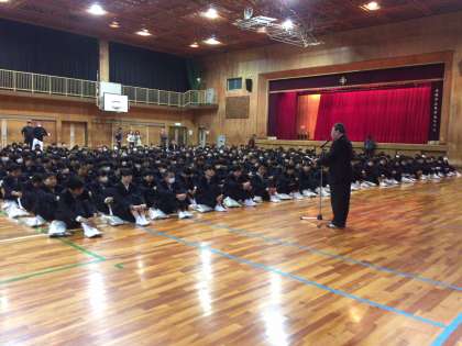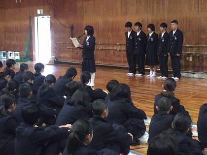 12月17日(月)、本校体育館で『全校集会』を行いました。