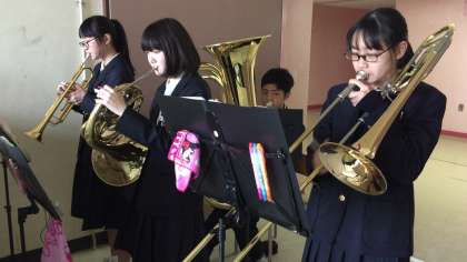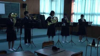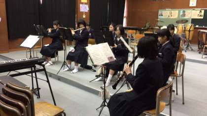 写真は、吹奏楽部の活動の様子です。12月25日(火)のクリスマスコンサートにむけて、練習しています。