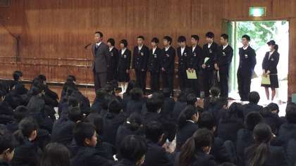 校長先生より、大坂なおみ選手と玉鷲関の優勝にふれ、毎日(長年)の努力の結果であり、それを継続して行うことが大切でです。皆さんもコツコツ努力を積み上げてくださいというお話がありました。