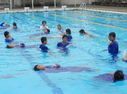 リラックスして水面に浮く方法を教えていただきました。身近なペットボトルを利用することや自分の衣服を脱いで、服の中に空気を入れ、浮力として利用する方法も知りました。