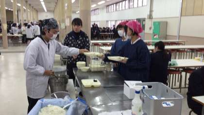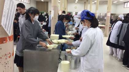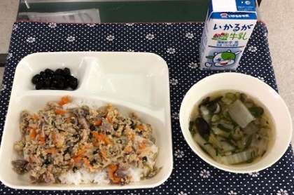 1月31日(木)、今日の給食の献立は『他人丼・すまし汁・黒豆の煮もの・米飯・牛乳』でした。みんなで協力して、すみやかに配膳し、美味しく完食しました。