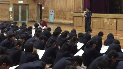 2月8日(金)6限、本校体育館で、3年生は、『私立入試』の事前指導を行いました。