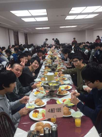 パンやスープをおかわりして、これから始まるスキー講習にむけて力を蓄えています。