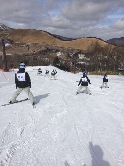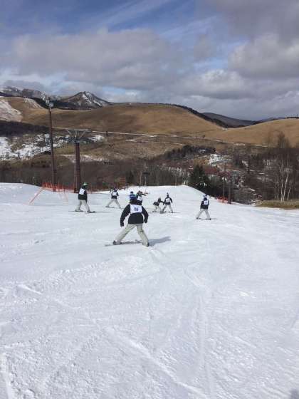 ボーゲンで、スピードを調節しながら滑る練習をしています。