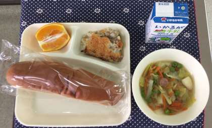 明日も、1年生のみ給食実施で、『ハヤシライス・カリフラワーとコーンのサラダ・みかん(缶)・ミニフィッシュ・米飯・牛乳』の予定です。