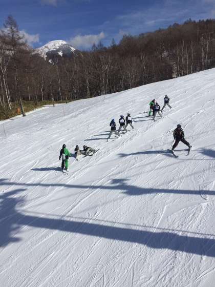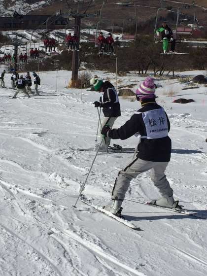 緩斜面のゲレンデ、中斜面のゲレンデ、急斜面のゲレンデに分かれて練習しています。