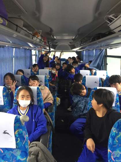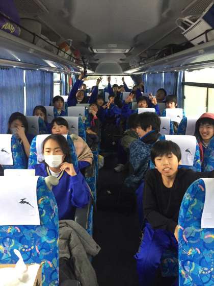 帰りのバスの中では、各クラスで音楽を聴いたりしながら盛り上がっています。
