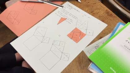 写真は、2限、3年生の『三平方の定理』の授業の様子です。