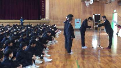 2月25日(月)朝、本校体育館で『全校集会』を行いました。