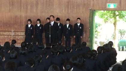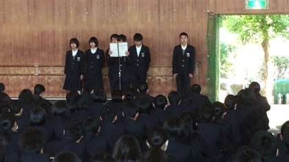 最後に、生徒会役員より今週の行事連絡をして、全校集会を終えました。
