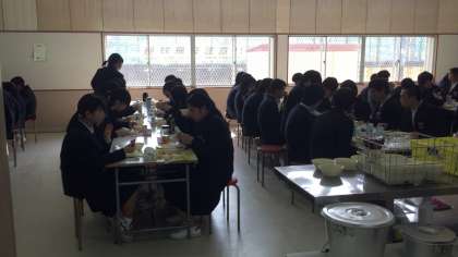 2月25日(月)、今日の給食の献立は、『中華おこわ・卵スープ・キャベツのオイスターソースいため・パン・牛乳』でした。みんなでおかわりをして、完食しました。