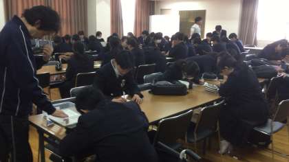 帰校後、担当の先生に、受検番号を報告し、集合時間や交通経路の確認などを行いました。