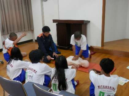 心臓マッサージには、結構な力が要ります。正しいポイントを正しいリズムで圧迫する。なかなか難しいものです。複数のメンバーの協力が必要だとわかりました。