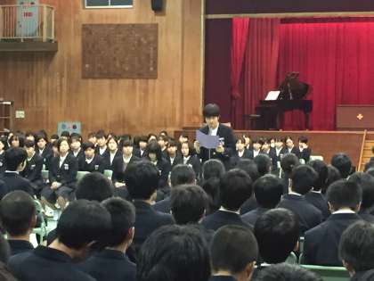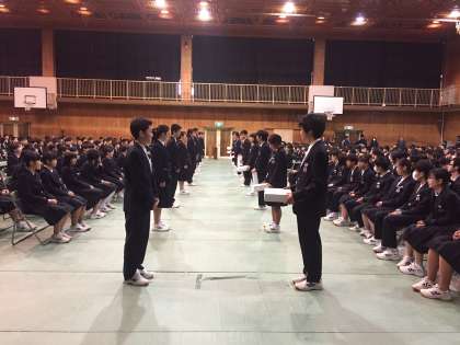 卒業生からあいさつがあり、そのあと記念品の贈呈式がありました。