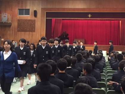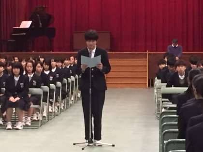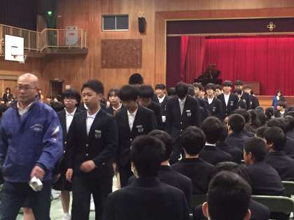 卒業生よりお礼の言葉があり、その後吹奏楽部の演奏と在校生の拍手の中、卒業生が退場しました。