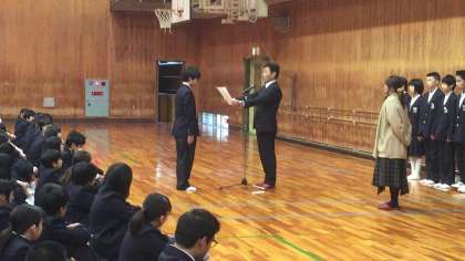 3月18日(月)朝、本校体育館で『全校集会』を行いました。