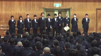 生徒会代表より週行事予定の連絡があり、全校集会を終えました。