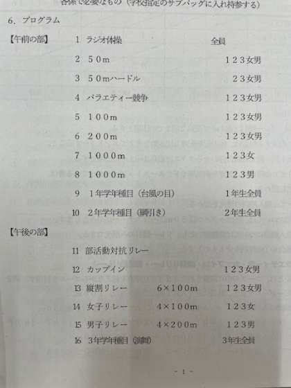 *体育祭当日と27日(月)予備日は給食がありませんので弁当を持参してください。